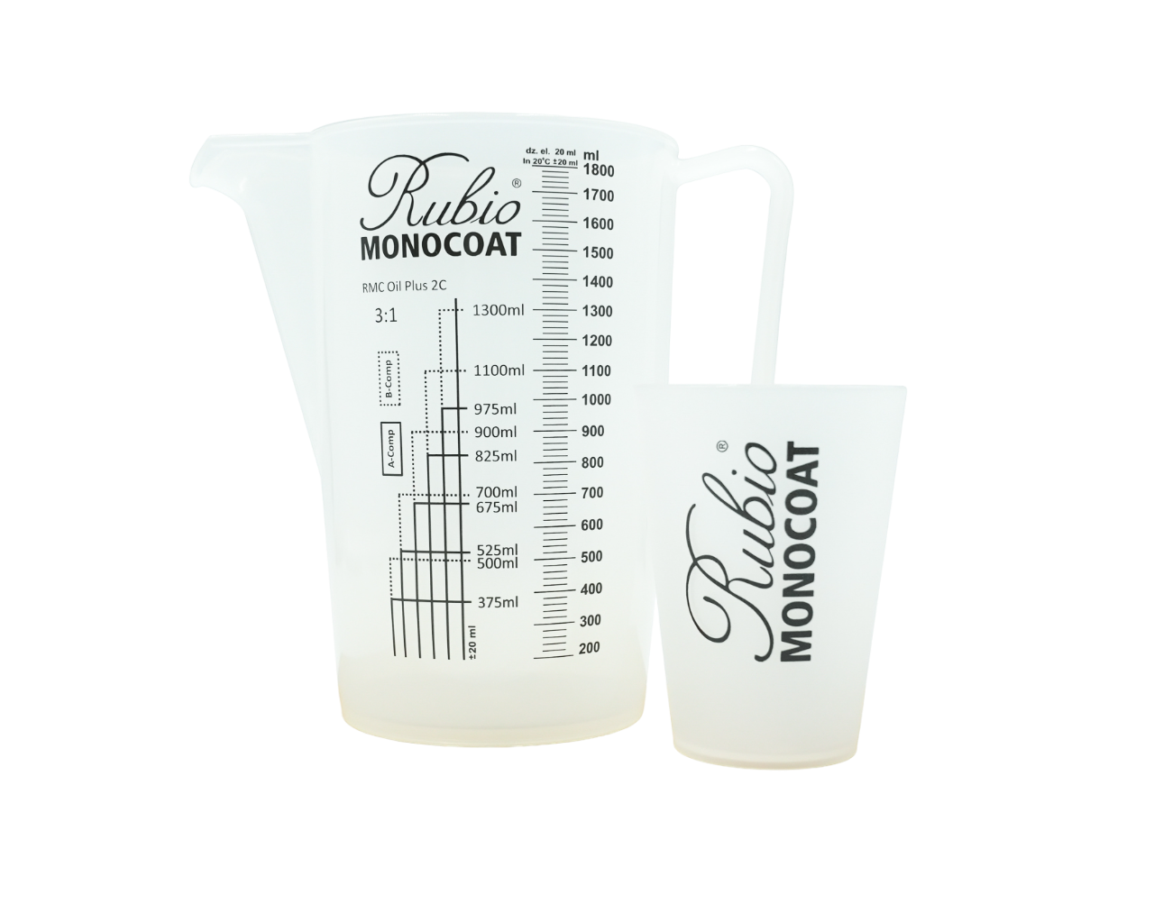 Beide maatbekers hebben ook een aparte maattabel voor Oil Plus 2C. De tabel waarborgt automatisch een 3:1 verhouding voor respectievelijk de A-component en B-component van Oil Plus 2C.